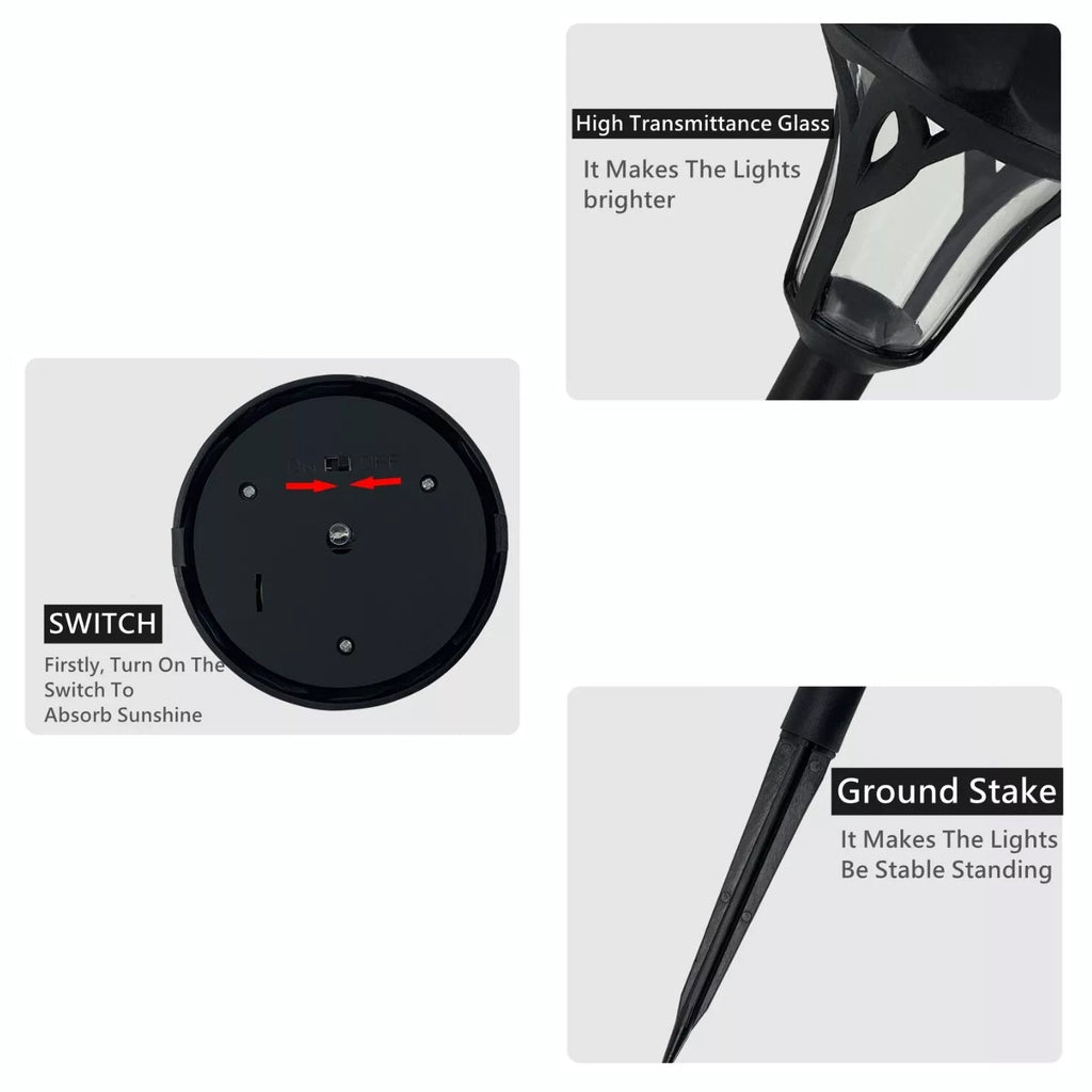 • ENERGY SAVING-Once placed in direct sunlight, these solar-powered outdoor decor lighting stakes require no plug-in electricity.  Equipped with an LED light bulb, you can be sure that the light fixture will last all through the nighttime.
